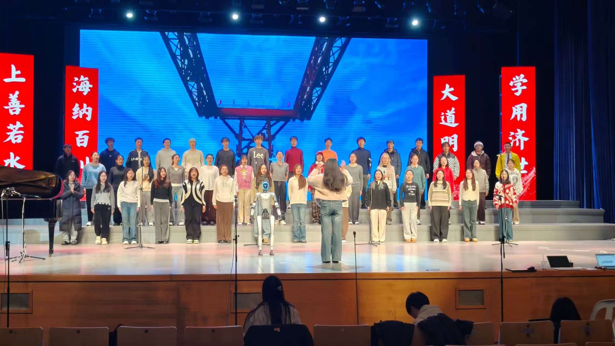 12月28日,“党的光辉照我心”上海大学2025年主题合唱比赛在宝山校区伟长楼隆重举行。我院由李诗雨担任指挥、张立秋担任钢琴伴奏的“追梦合唱团”,以一曲铿锵有力的《我们都是追梦人》斩获二等奖,用歌声为学院赢得荣誉,用旋律书写青春华章。